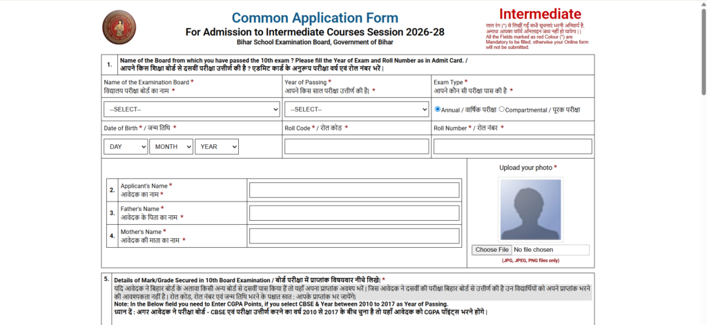 Bihar Board Inter Admission 2026 के लिए आवेदन करनी हेतु नीचे दिए गए स्टेप्स को फॉलो करके आवेदन कर सकते हैं जो कुछ इस प्रकार से है –